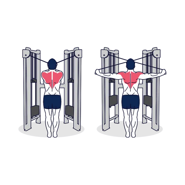 Cruce inverso en polea o máquina de deltoides posterior