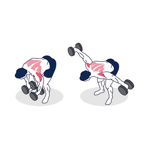 El tronco debe inclinarse lo suficiente para que el movimiento ocurra en el plano horizontal y no vertical. Las mancuernas se desplazan describiendo un arco, con los codos ligeramente flexionados y sin impulso.
