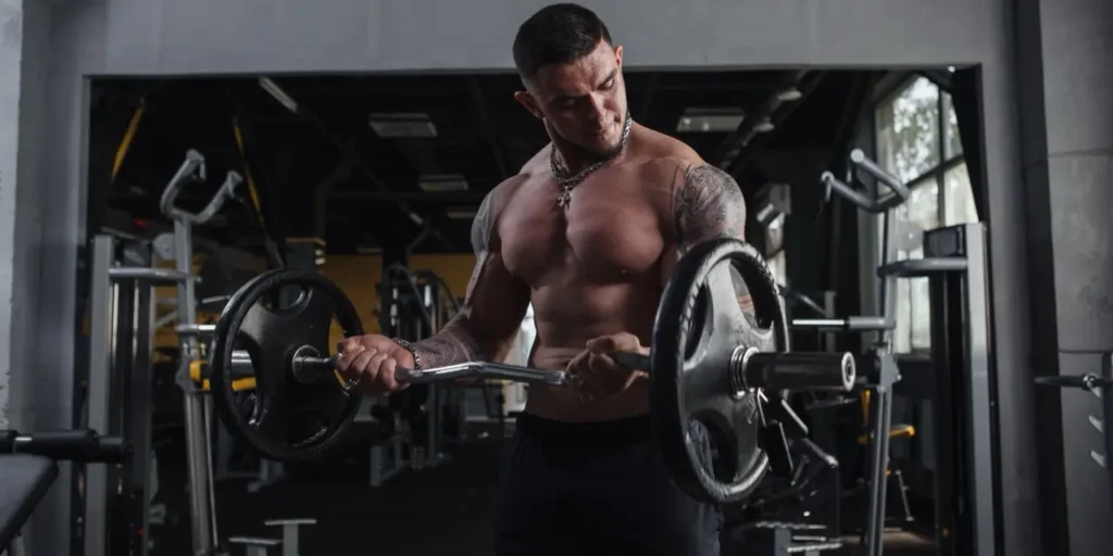 El curl con barra, ya sea recta o EZ, es uno de los movimientos más eficientes para ganar masa muscular en bíceps.